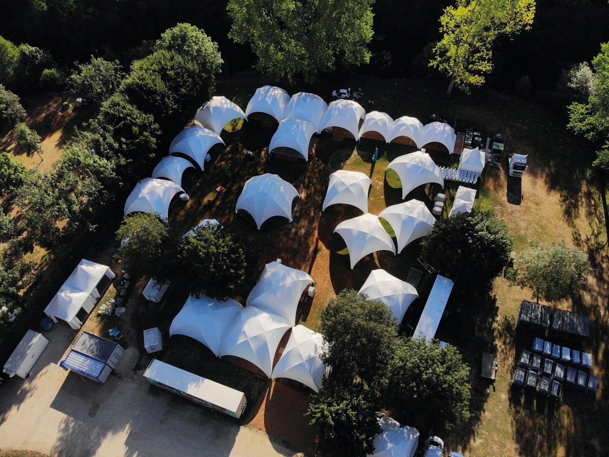De dome is een van de populairste veelzijdige tenten uit ons gamma. Met zijn unieke, strakke ronde vorm geef je je gasten of klanten een buitengewone, positieve outdoorervaring bij inspirerende locaties.